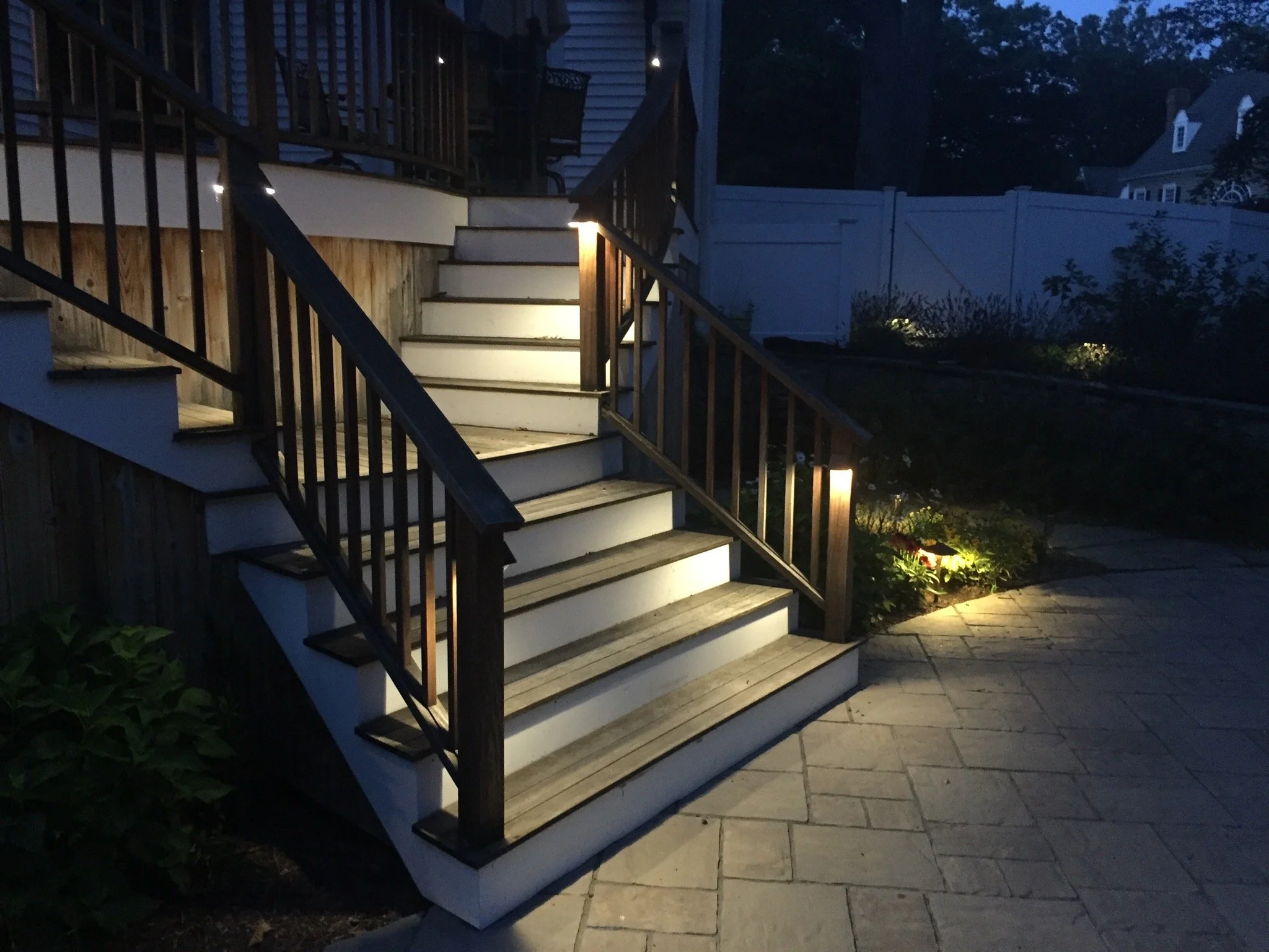 Safety: Another feature of 12vt LED lighting besides operating at a lower voltage than old style 120vt landscape lighting is it runs at a cooler temperature than incandescent or halogen light sources. Cooler to the touch is safer where humans or pets may come in contact with a lighting fixture especially in deck lighting applications.